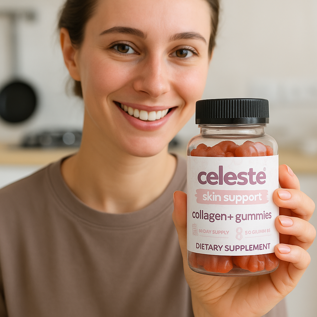Most collagen gummies are underdosed or packed with sugar. With Celeste® Collagen+ Gummies, you get real collagen peptides plus vitamin C, biotin, zinc, and vitamin E — in a tasty gummy you’ll actually take every day.